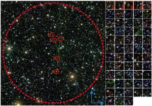 Son yapılan taramalarda yapıyı oluşturan toplamda 58 galaksi olabileceğini buldular. Bu zengin galaksi grubunun ışığı bize 2.7 milyar yılda ulaşıyor. Samanyolu’nun yaklaşık 50 katı kütleye sahip olduğu düşünülen yapı bu devasa kütleyi küçük bir alana sığdırıyor. Ekip, şu anda bu kümenin parçası olduğuna inanılan beş galaksiyi incelemek üzere işe koyuldu.